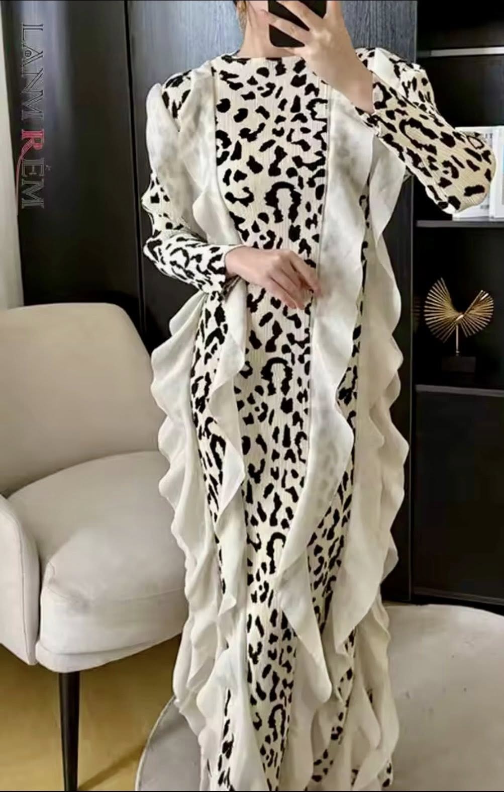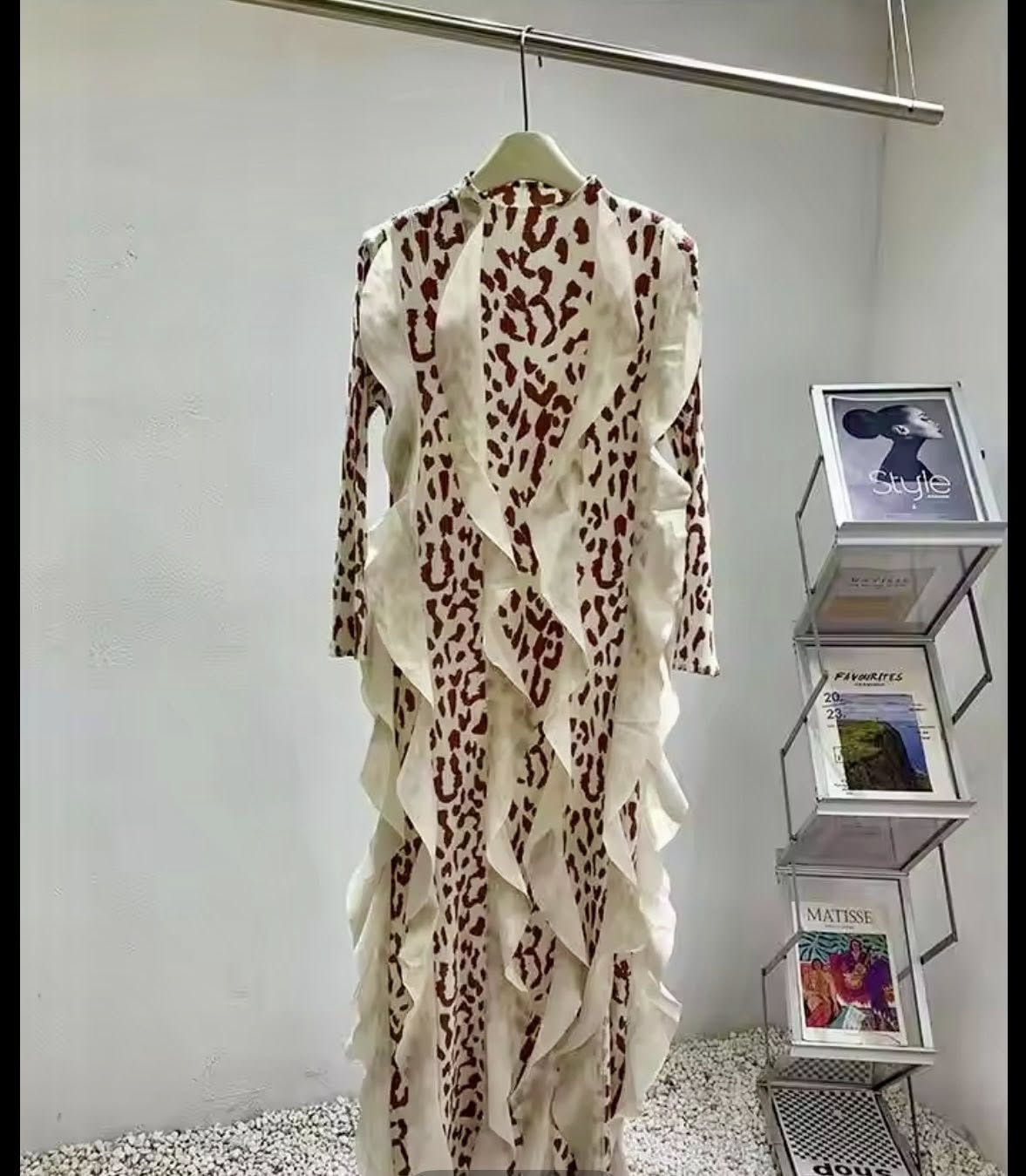 Be the first to review “Pleated Dress New Long Sleeve Leopard Print”